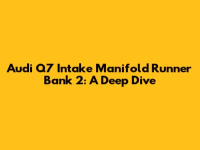 Alright, Audi Q7 owners, let's talk about something that can throw a wrench into your smooth ride: the intake manifold runner (IMR) bank 2. This is a pretty important system, so when it starts acting up, you definitely want to pay attention. In this article, we'll break down everything you need to know about what the intake manifold runner bank 2 is, what can go wrong, how to diagnose the problem, and what you can do to fix it. Think of it as your go-to guide for keeping your Q7 running like the luxury SUV it is. Let's get started, shall we?