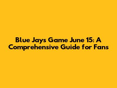 Blue Jays Game June 15: What You Need To Know