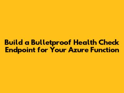 Why You Absolutely Need a Health Check Endpoint for Your Azure Function