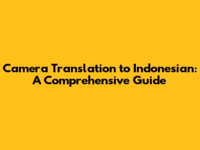 Camera Translation To Indonesian: A Comprehensive Guide