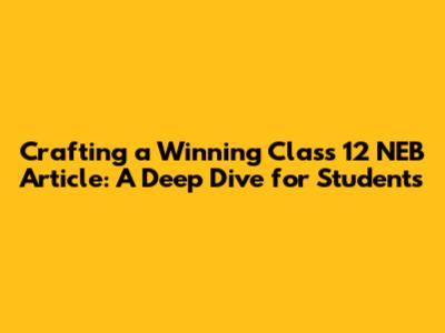 Hey guys! So, you're in Class 12 and need to nail that NEB article, huh? Don't sweat it! This isn't just about cramming facts; it's about showing off your critical thinking, analytical skills, and writing prowess. Think of it as your chance to shine and prove you've got what it takes to impress the examiners. We're talking about a piece that's not only informative but also engaging, structured, and, most importantly, perfectly aligned with what the NEB expects. Let's break down how to create an article that stands out, grabs attention, and secures those high marks. We’ll cover everything from choosing the right topic to the final polish, ensuring you’re confident and ready to tackle this essential part of your exams. Get ready to transform your approach and write an article that truly makes an impact!