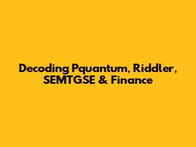 Decoding Pquantum, Riddler, SEMTGSE & Finance