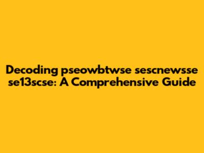 Decoding Pseowbtwse Sescnewsse Se13scse: A Comprehensive Guide