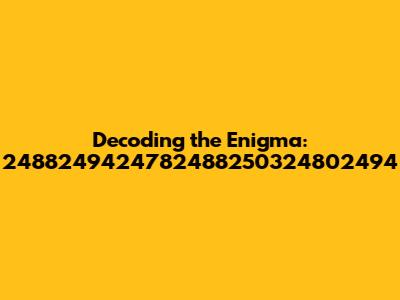 Alright guys, let's dive into this mysterious sequence: 2488249424782488250324802494. At first glance, it might seem like a random string of numbers, but who knows? Maybe there's a hidden message or a secret code embedded within! In this article, we're going to break down possible interpretations, explore potential origins, and try to make some sense of this numerical enigma. Whether it's a serial number, a date, or just pure randomness, we'll leave no stone unturned.