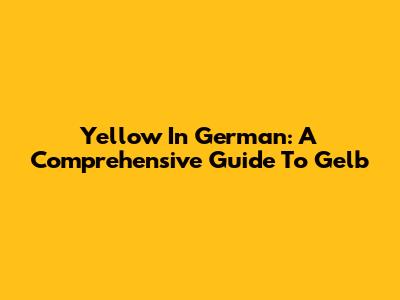 Yellow In German: A Comprehensive Guide To "Gelb"