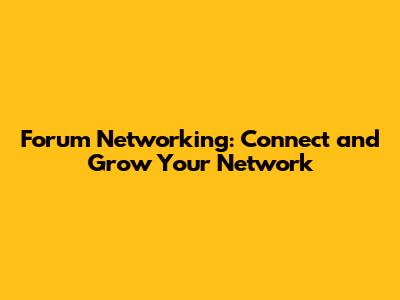 Forum Networking: Connect And Grow Your Network