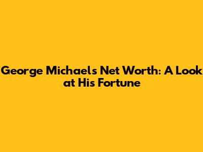 George Michael's Net Worth: A Look At His Fortune