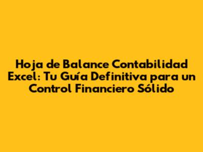 Hoja De Balance Contabilidad Excel: Guía Completa