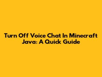 Turn Off Voice Chat In Minecraft Java: A Quick Guide