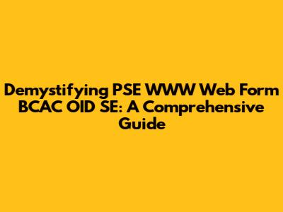 Demystifying PSE WWW Web Form BCAC OID SE: A Comprehensive Guide