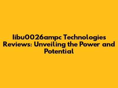 Iibu0026ampc Technologies: In-Depth Reviews & Insights