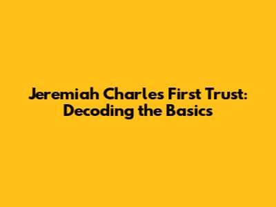 Hey everyone, let's dive into something that might sound a little complex at first: the Jeremiah Charles First Trust. Don't worry, we're going to break it down in a way that's easy to understand. We'll explore what this trust is all about, what it does, and why it might be relevant to you. Think of this as your friendly guide to understanding the ins and outs of this financial entity. Grab a coffee, sit back, and let's get started on unraveling the mysteries of the Jeremiah Charles First Trust, alright?