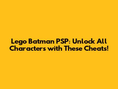 Hey there, Lego Batman fans! Are you ready to dive into the blocky, bat-filled world of Gotham on your PSP? One of the most fun aspects of Lego Batman is collecting and playing as all your favorite characters. But let’s face it, unlocking them one by one can take a while. That's where cheats come in handy! In this guide, we’ll show you how to unlock all the characters in Lego Batman on your PSP, so you can start causing chaos (or fighting crime!) with your dream team right away. Using cheats can significantly enhance your gameplay experience, especially if you’re eager to explore the full roster of heroes and villains without grinding through the story mode repeatedly. Plus, it’s just plain fun to experiment with different character abilities and see how they interact within the game's environment. Whether you’re a seasoned Lego Batman player or a newcomer to the series, these cheats will add a fresh and exciting dimension to your gaming sessions. So, grab your PSP, and let’s get started on unlocking all those awesome characters!