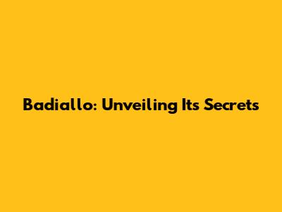 Badiallo: Unveiling Its Secrets