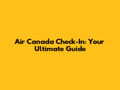 Air Canada Check-In: Your Ultimate Guide