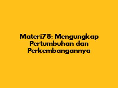 Materi78: Mengungkap Pertumbuhan Dan Perkembangannya