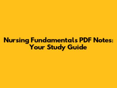 Nursing Fundamentals PDF Notes: Your Study Guide