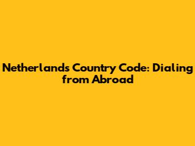 Netherlands Country Code: Dialing From Abroad