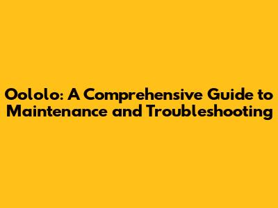 Oololo: A Comprehensive Guide To Maintenance And Troubleshooting