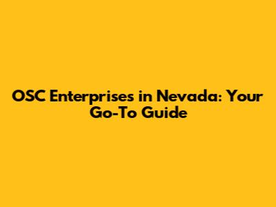 OSC Enterprises In Nevada: Your Go-To Guide
