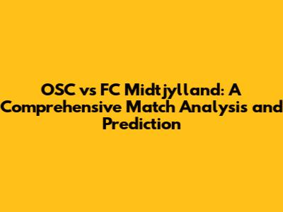 Hey guys! Let's dive deep into the upcoming match between OSC and FC Midtjylland. We'll break down everything from team form to potential strategies, giving you the lowdown on what to expect. Get ready for a thorough analysis that'll help you understand the game better and maybe even make some winning predictions. This article will be your go-to guide for everything related to this exciting match-up.