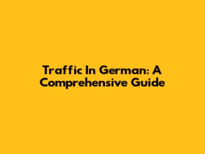 Traffic In German: A Comprehensive Guide