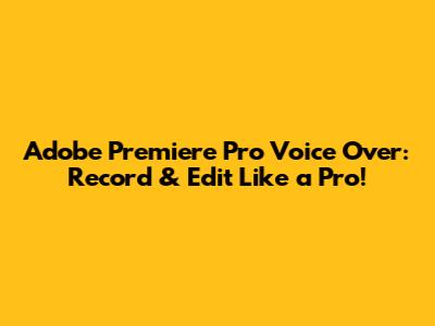 Premiere Pro Voice Over: Record & Edit Like A Pro!