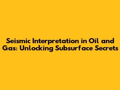 Seismic Interpretation In Oil And Gas: Unlocking Subsurface Secrets