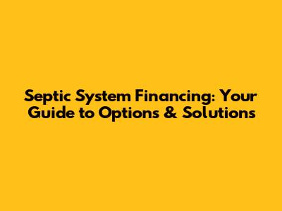 Hey guys! Dealing with septic system issues can be a real headache, especially when it comes to figuring out how to pay for it. Whether you're facing a repair, replacement, or a brand-new installation, understanding your financing options is crucial. Let's dive into the world of septic system financing to help you make the best decision for your needs and budget.