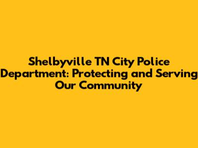 Hey guys! Ever wonder about the folks who keep Shelbyville, TN safe and sound? Well, let's dive into the Shelbyville TN City Police Department! This isn't just any police force; it's the backbone of our community's safety and well-being. We're going to explore everything from their mission and values to their dedicated officers and community programs. So, buckle up and let's get started!