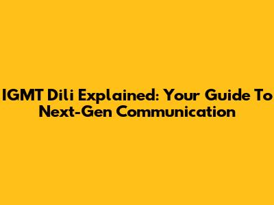 IGMT Dili Explained: Your Guide To Next-Gen Communication