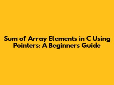 Sum Of Array Elements In C Using Pointers: A Beginner's Guide