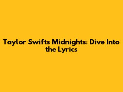 Taylor Swift's Midnights: Dive Into The Lyrics