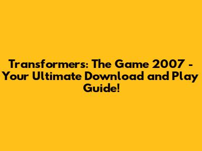 What's up, gamers! Today we're diving deep into the epic world of Transformers: The Game (2007). If you're looking to relive those epic Autobot vs. Decepticon battles or experience them for the first time, you've come to the right place, guys! We're going to cover everything you need to know about getting this awesome game up and running on your PC. We'll talk about where to find it, what to expect, and of course, how to download it so you can start transforming and rolling out!