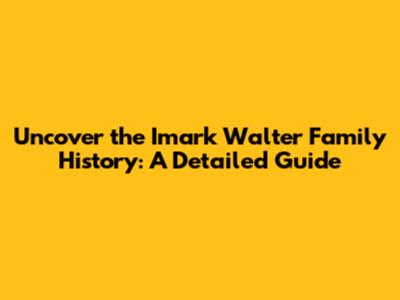 Uncover The Imark Walter Family History: A Detailed Guide