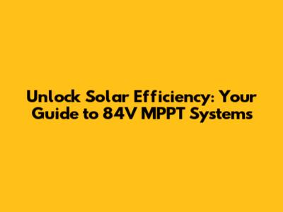 Unlock Solar Efficiency: Your Guide To 84V MPPT Systems