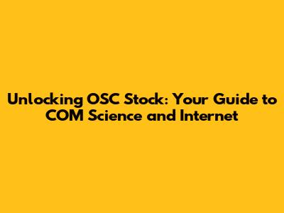 Hey guys! Let's dive into something super interesting – understanding OSC Stock, especially when it comes to the world of COM Science and the Internet. It might sound a bit techy, but trust me, we'll break it down so it's easy to grasp. We're going to explore what OSC Stock is all about, how it connects to the exciting fields of communication science and the vast landscape of the internet. It's like putting together pieces of a puzzle to understand how things work in today's digital world. Get ready for a journey that connects financial markets with the ever-evolving world of information and technology!