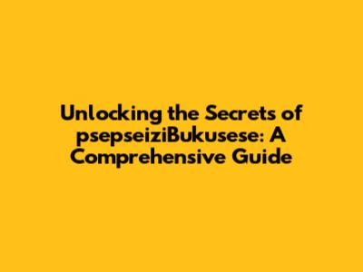 Unlocking The Secrets Of PsepseiziBukusese: A Comprehensive Guide