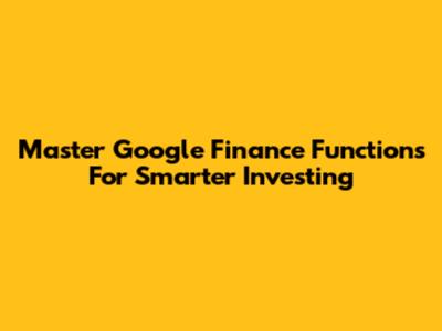 Master Google Finance Functions For Smarter Investing