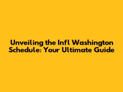 Unveiling The Infl Washington Schedule: Your Ultimate Guide