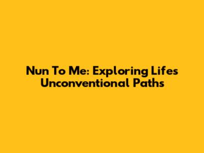 Nun To Me: Exploring Life's Unconventional Paths