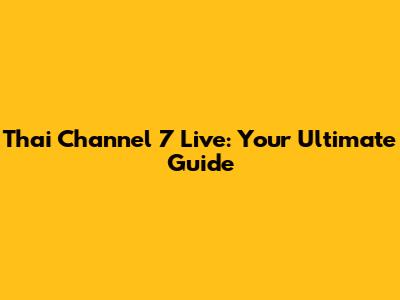 Watch Thai Channel 7 Live: Your Ultimate Guide