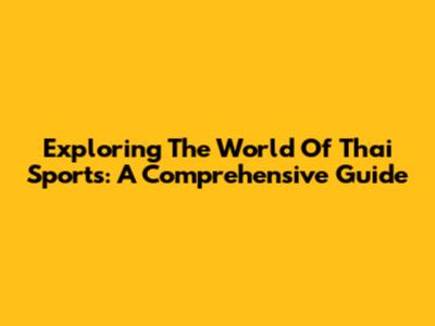 Exploring The World Of Thai Sports: A Comprehensive Guide